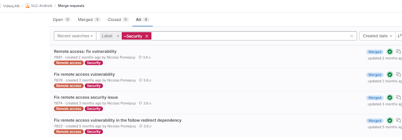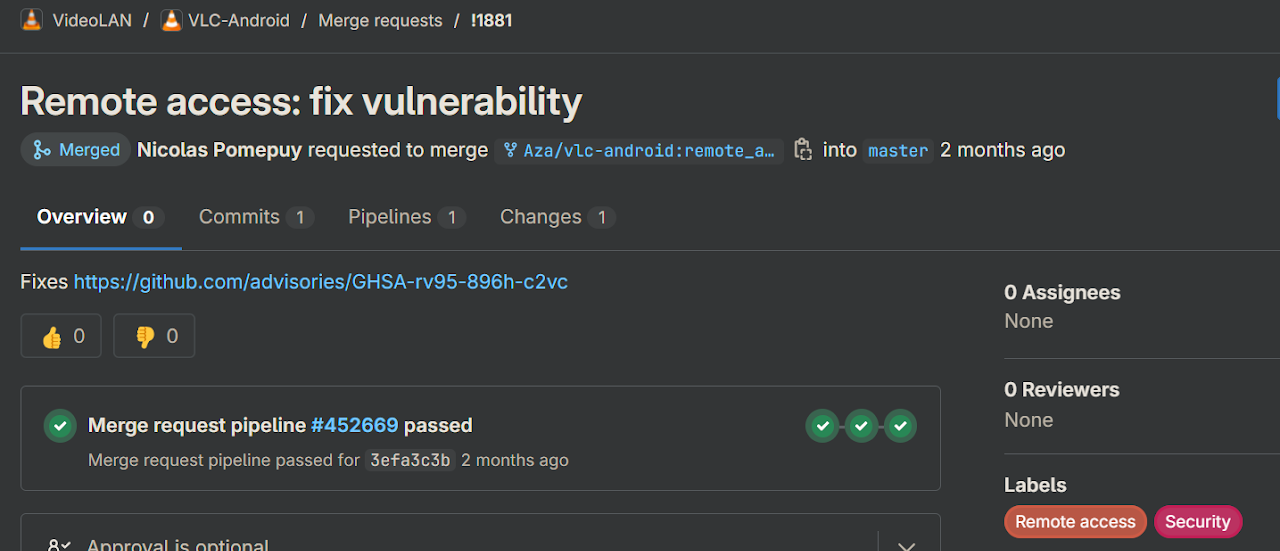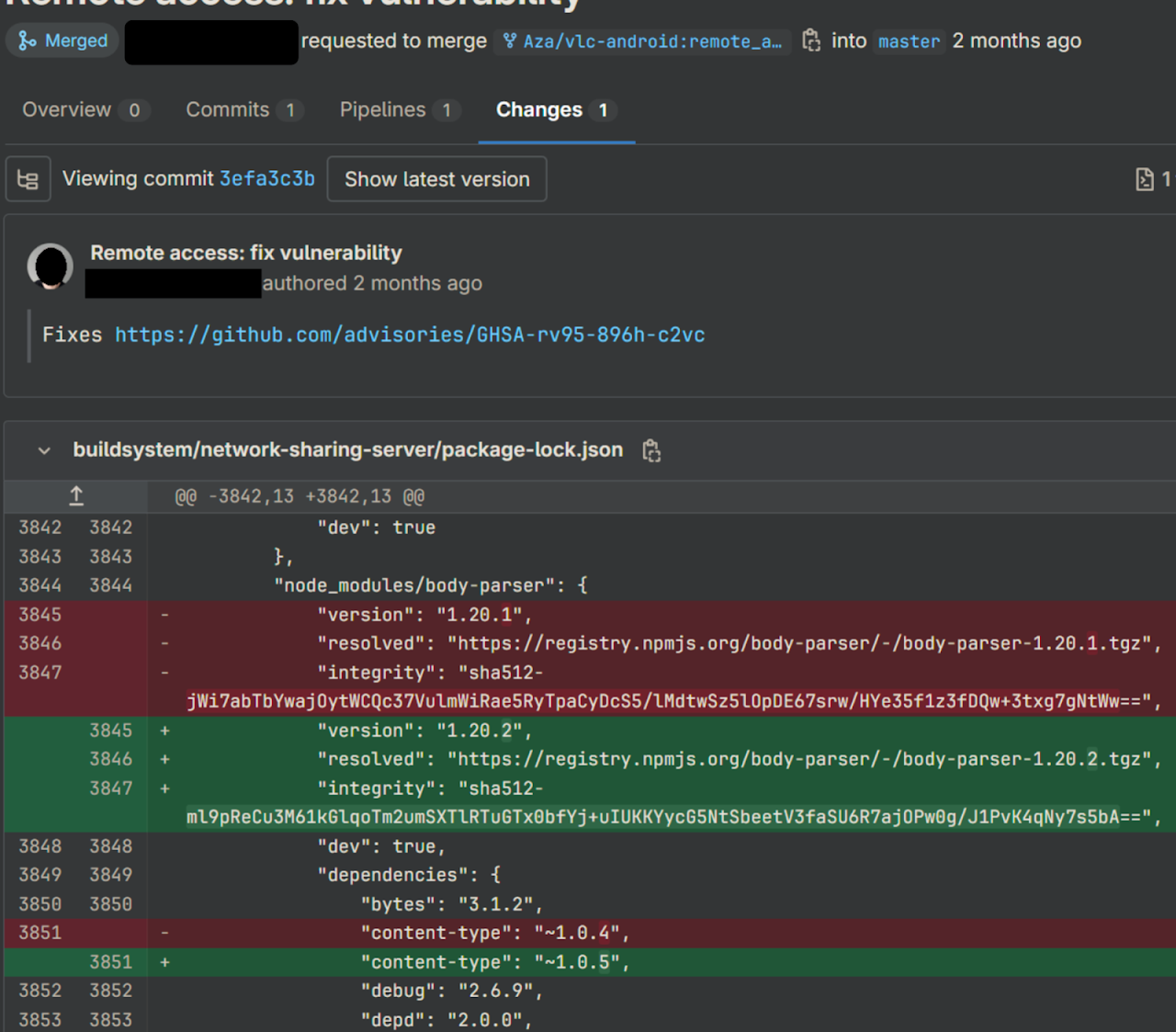 Upon digging further, we can see the merge request and visually identify the vulnerabilities associated with this particular bug followed by a mitigating patch.