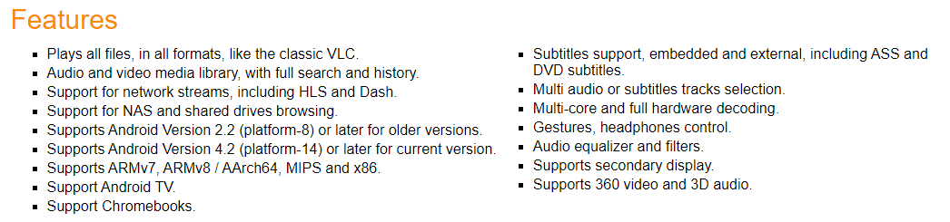 Finding answers to these questions will help shape the strategies used to propel our security research. Looking at the official website, VLC for Android is described as follows: